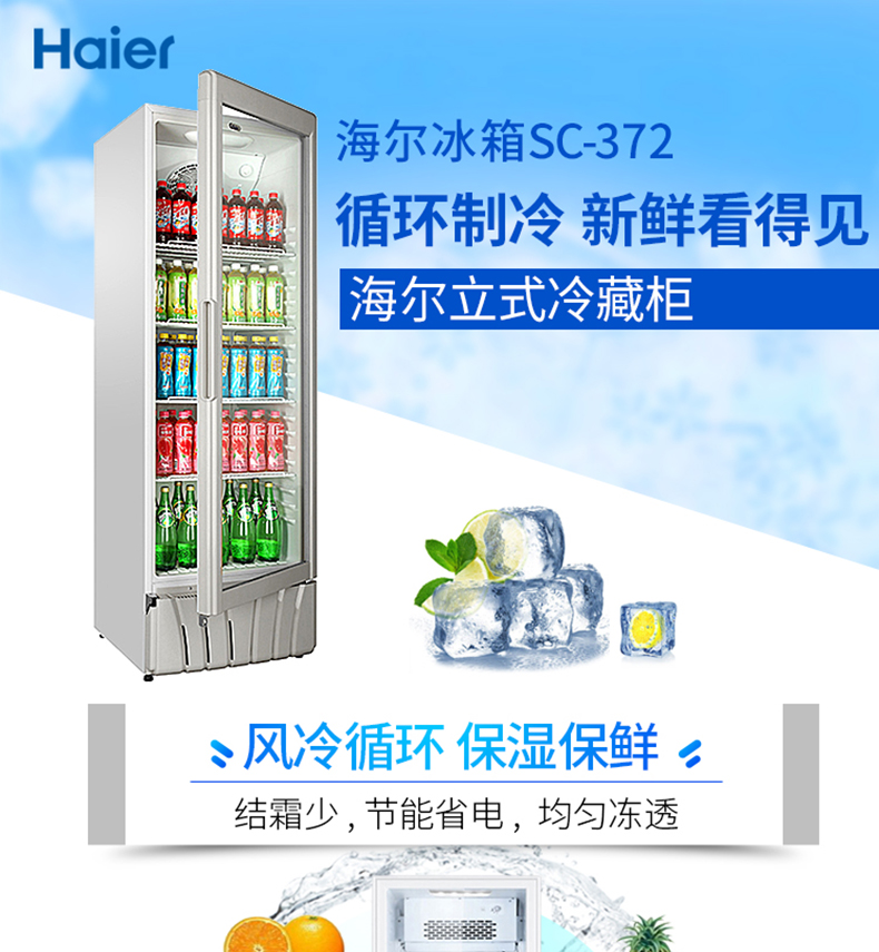 海尔 SC-372 350升立式单门冷藏保鲜柜玻璃门白色